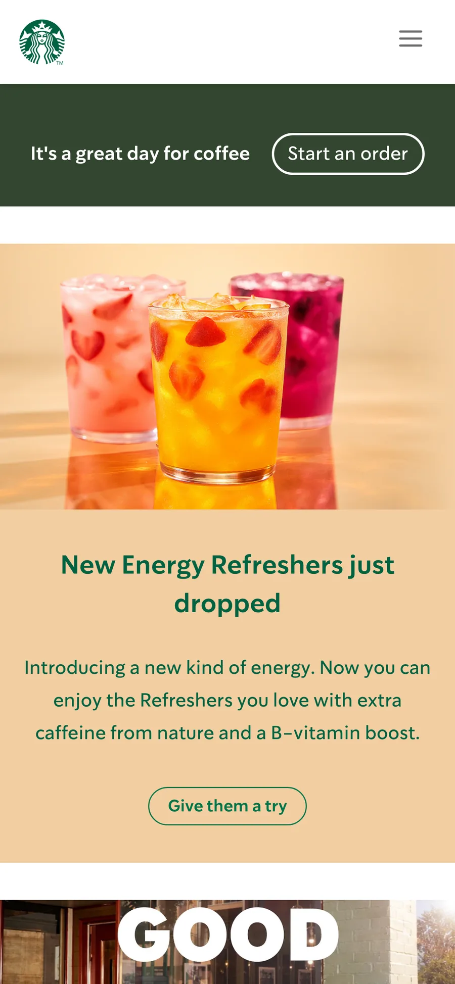 Use the Starbucks style for a local services website. Make the offer, service area, and path to calling or messaging obvious on mobile.